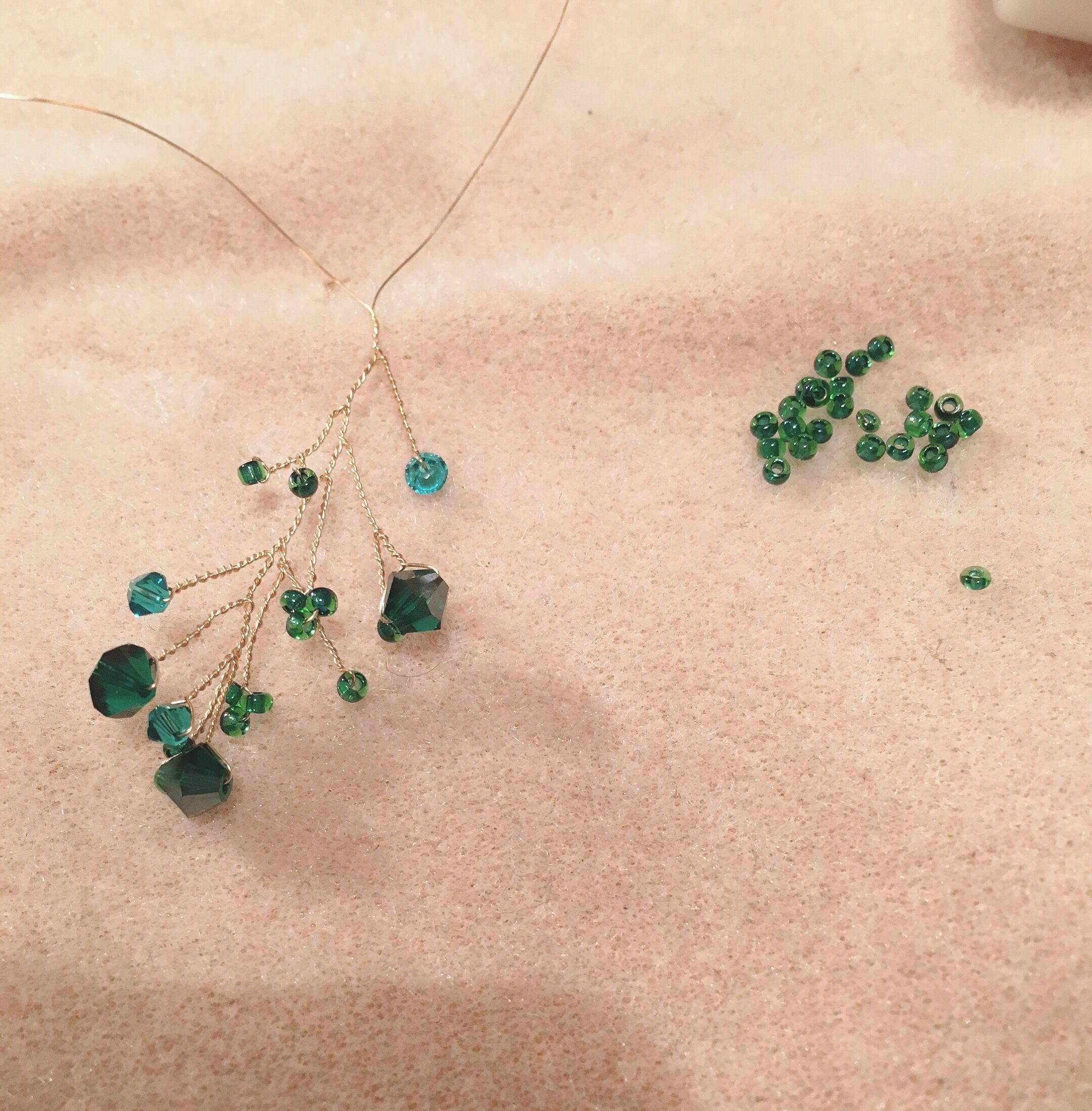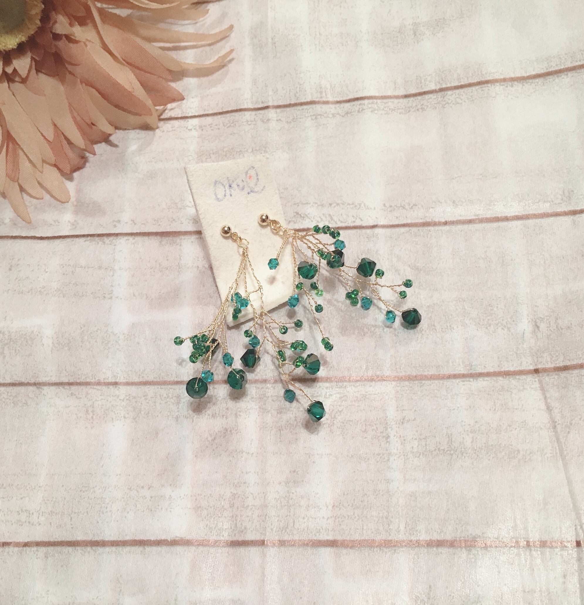 グリーンのスワロフスキーを大小と使って