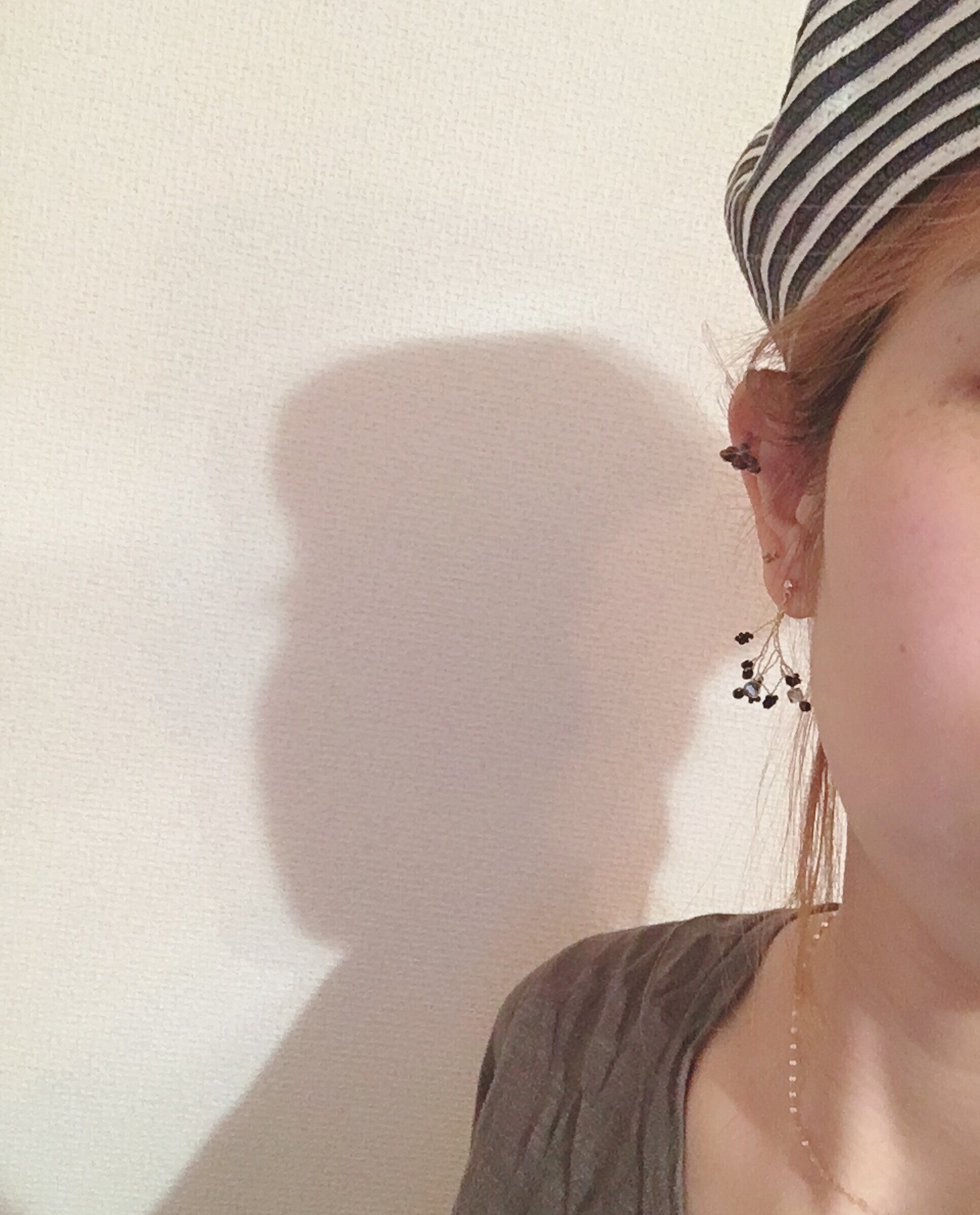 ブラックのスワロフスキーとビーズをワイヤーでねじり 小枝風に仕上げたピアス