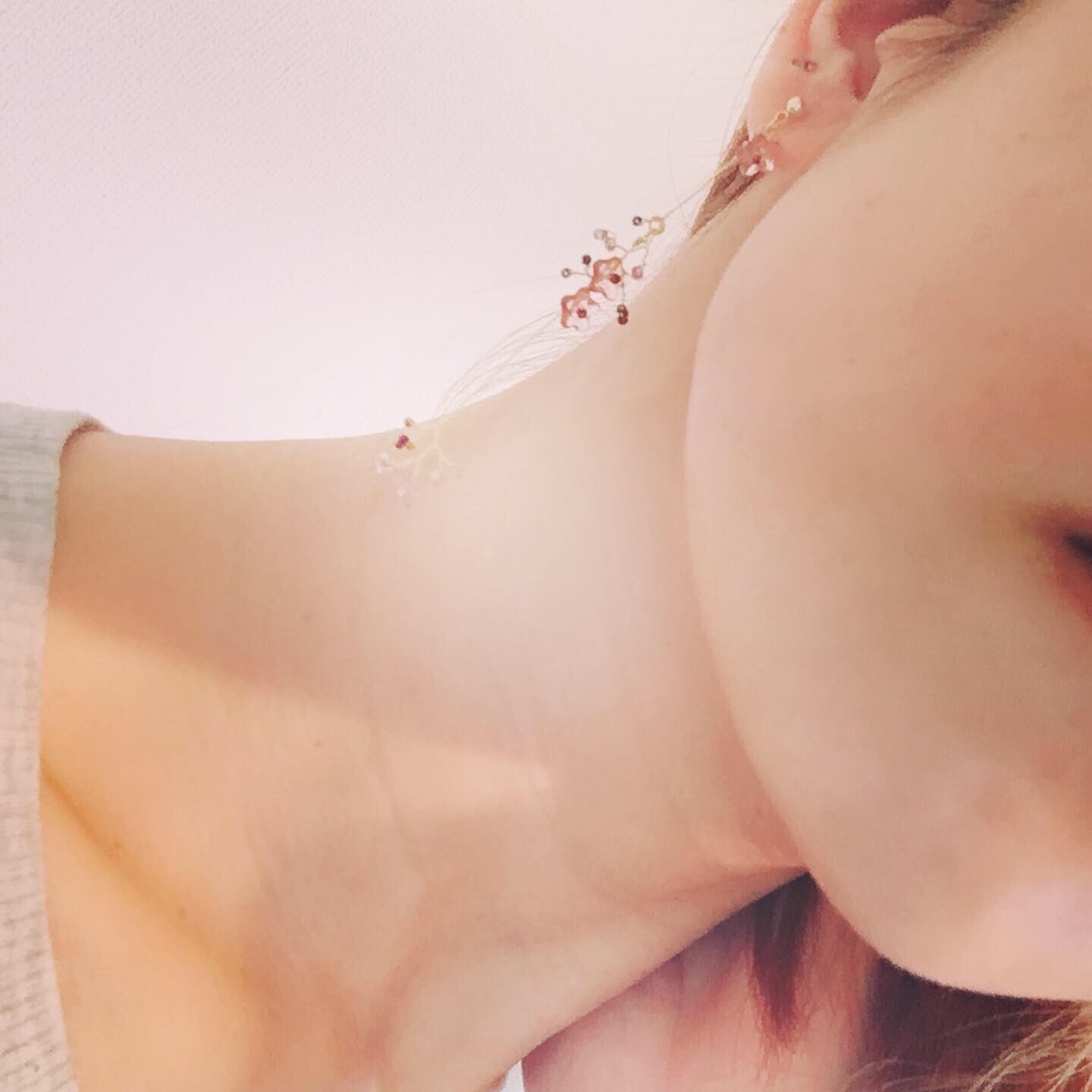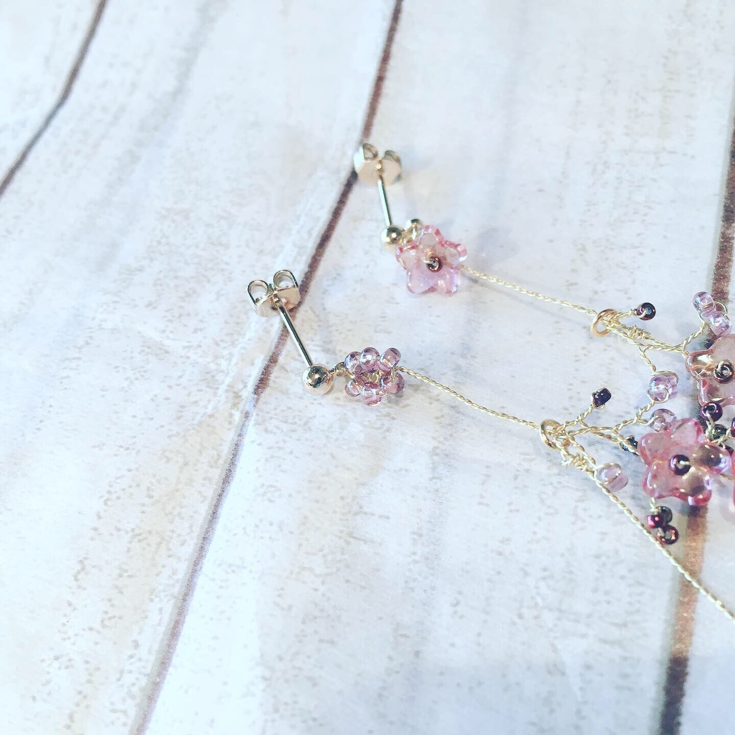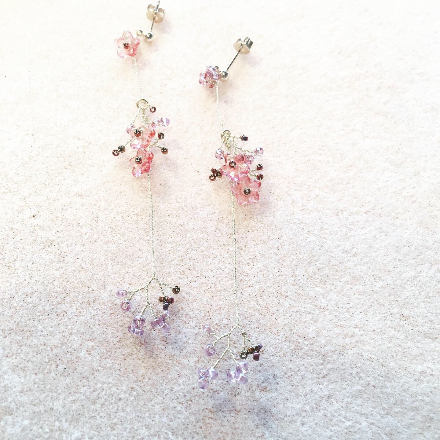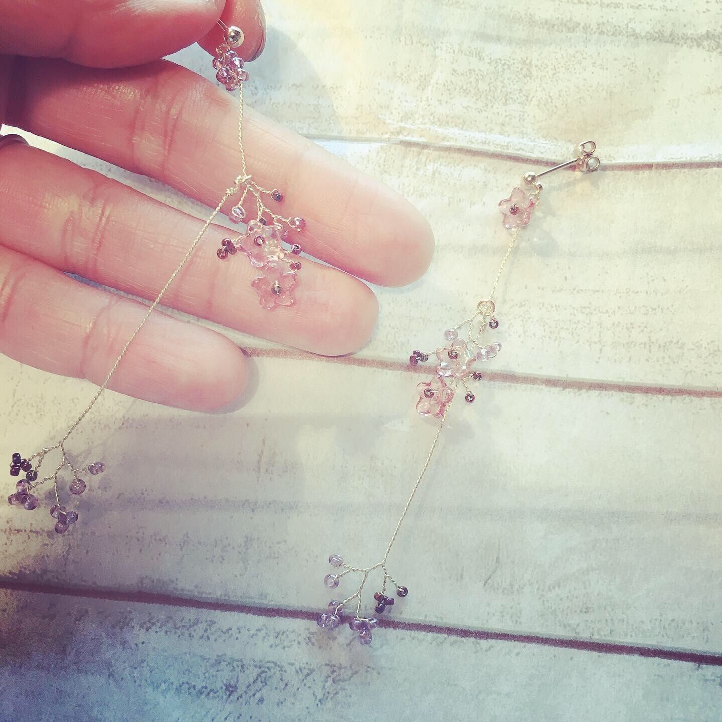 チェコガラスとビーズをワイヤーでねじり 小枝のようにしてます。