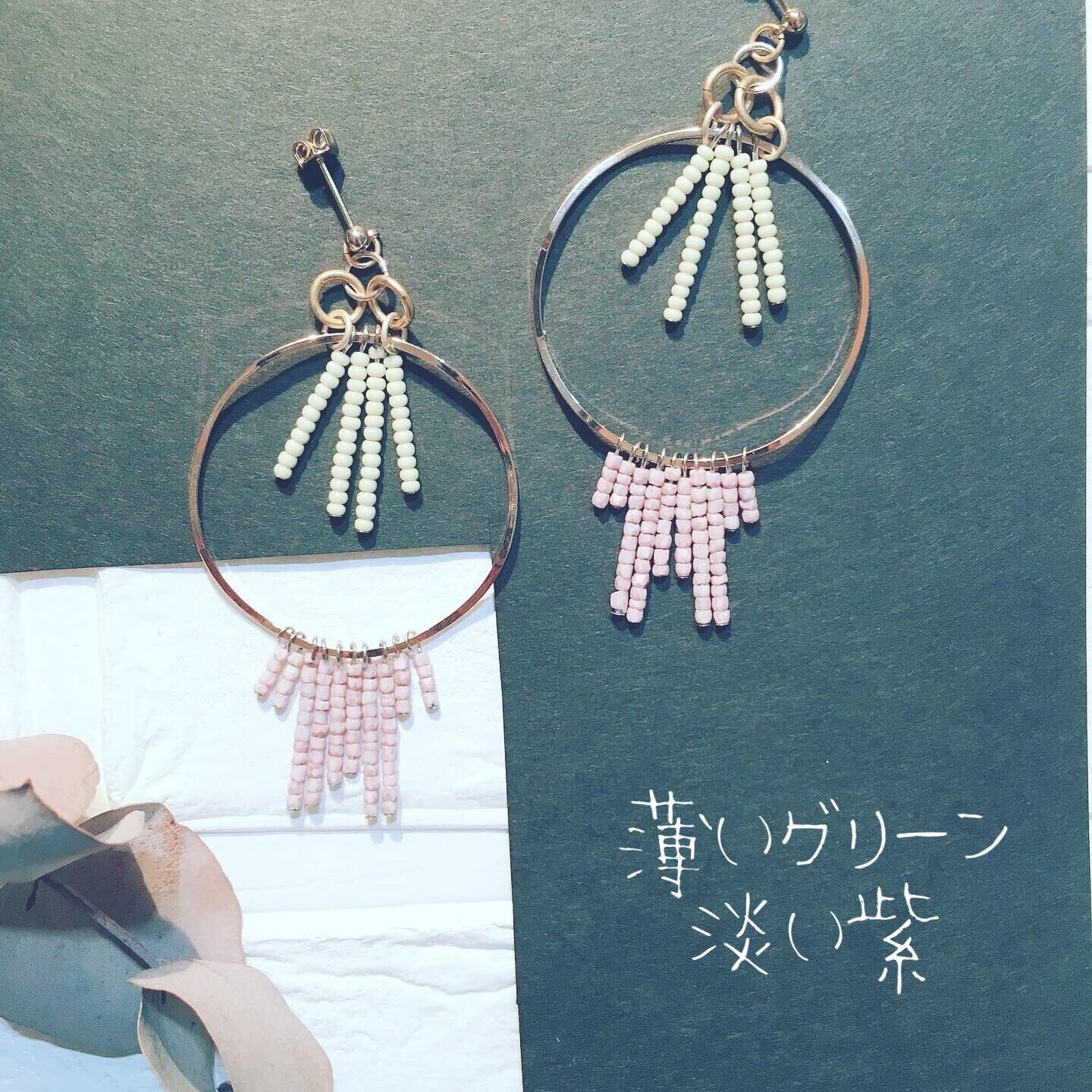 フープパーツとビーズを組み合わせた