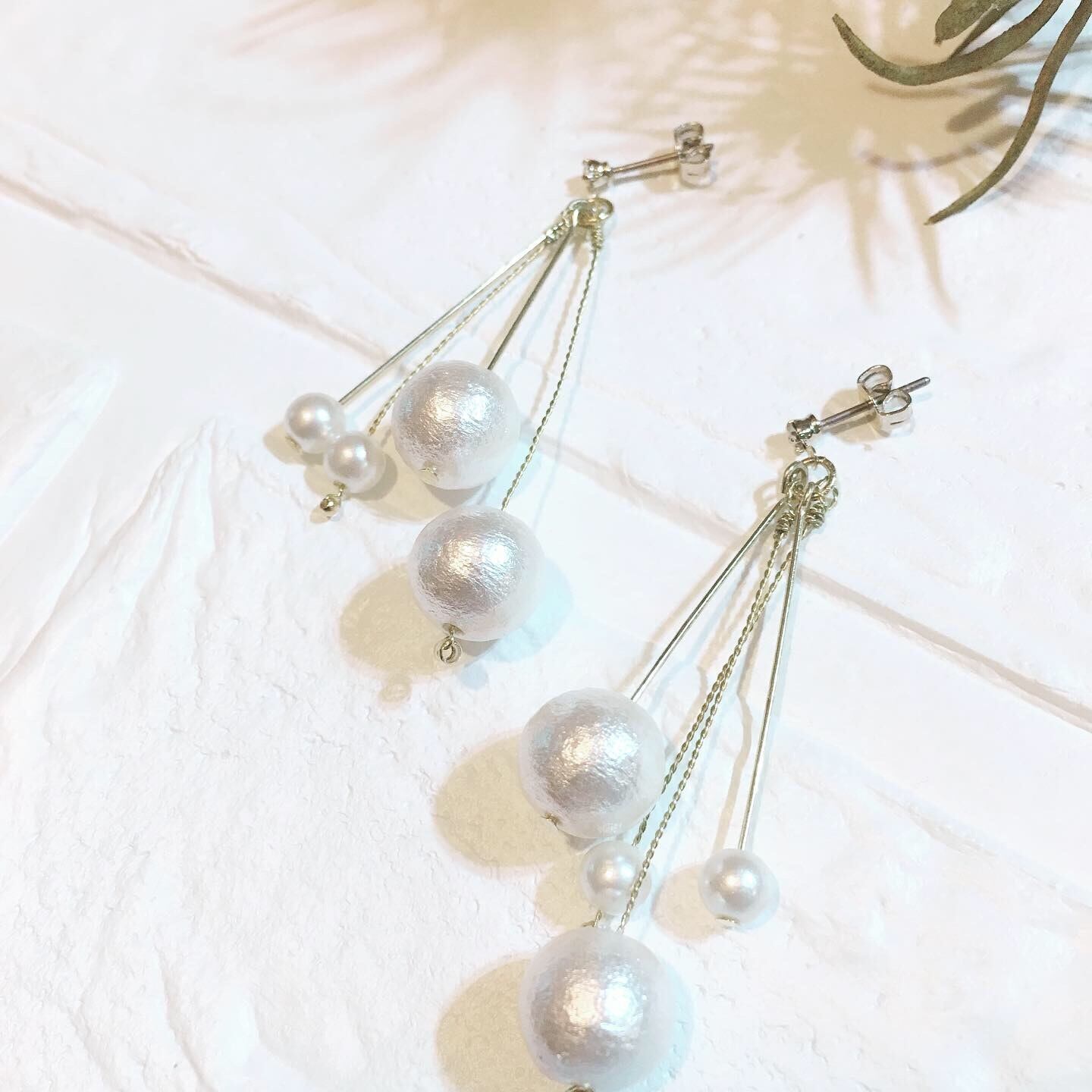 パールビーズとコットンパールを組み合わせで作ったピアス