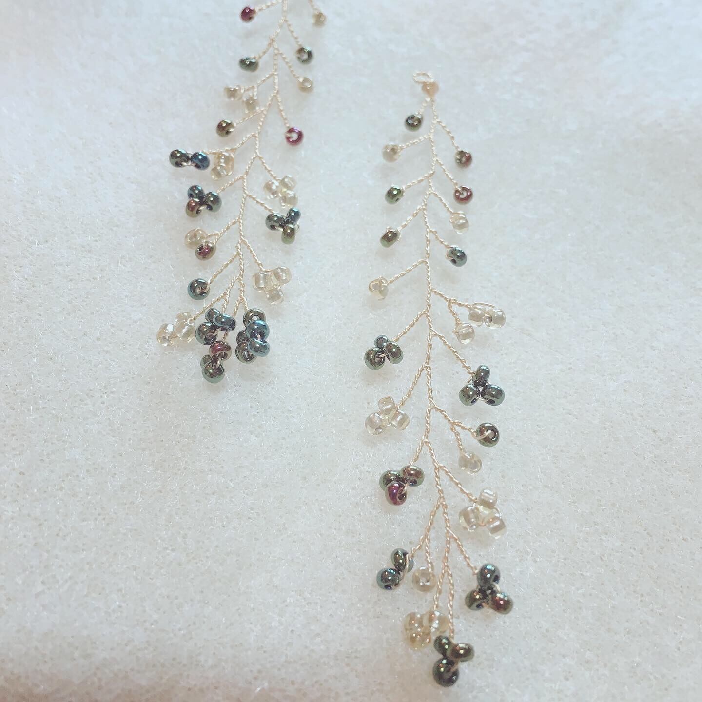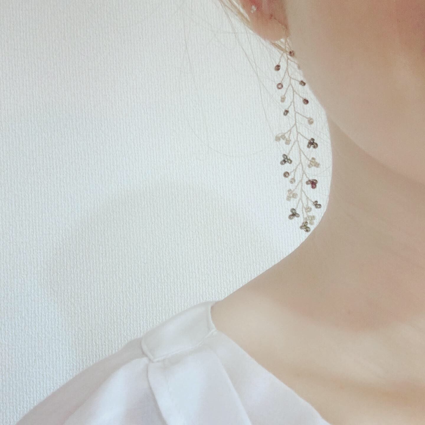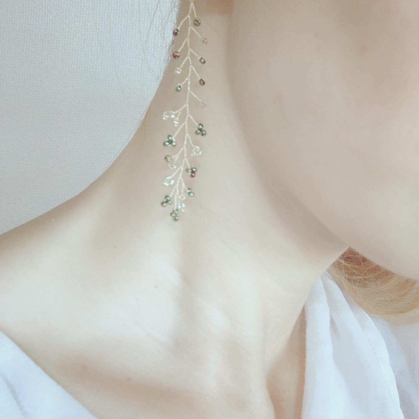 ワイヤーとビーズをねじりあげて小枝風に仕上げたピアス
